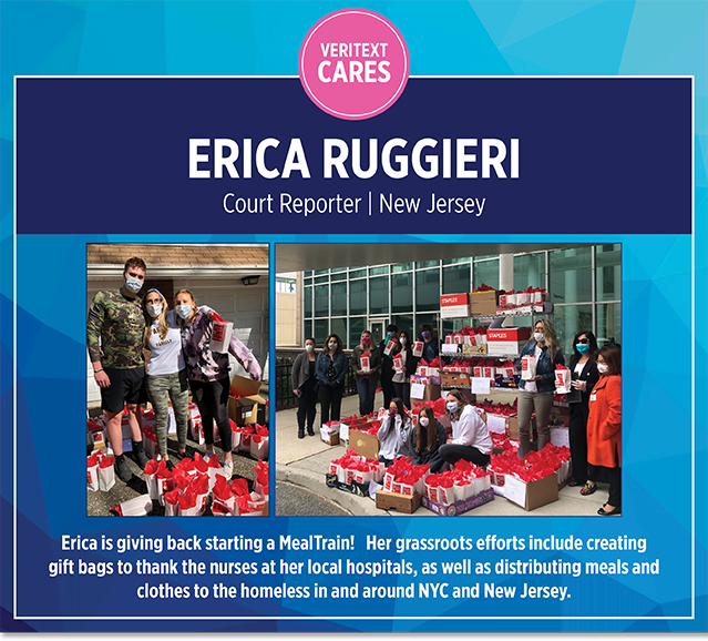 Veritext Cares is excited to spotlight those who are making a difference during the COVID-19 pandemic by giving back. Each one is using their unique skills and talents to support their communities and the world at large. We are so grateful to work with you.