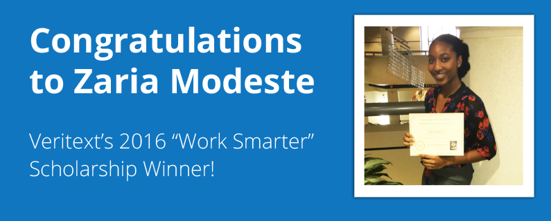 Veritext would like to congratulate our 2016 “Work Smarter” Scholarship winner, Zaria Modeste!